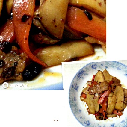 第一次做,老公说有麻辣香锅的赶脚!很下饭!老干妈比较给力,其他步骤跟小炒肉差不多啦!