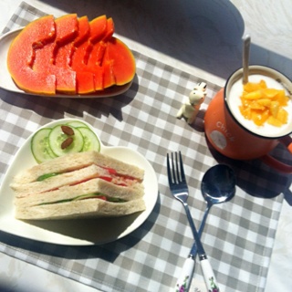 时蔬三明治.木瓜.黄桃酸奶.☀