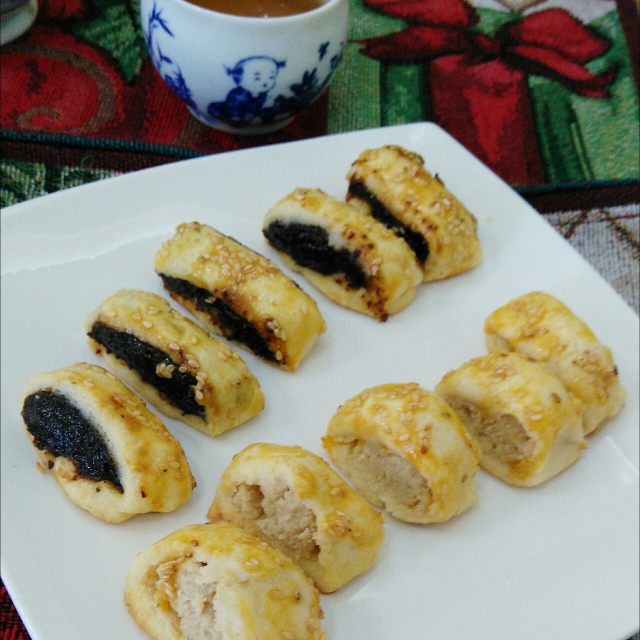 一口枣泥酥,一口莲蓉酥。枣泥和莲蓉亲手制作,辛苦,吃起来放心。但是好担心自己的体重啊