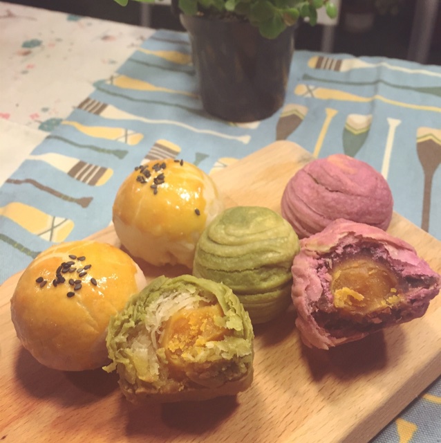 蛋黄酥~紫薯、抹茶、原味~花好月圆,中秋快乐~内附一次做六色蛋黄酥方法~