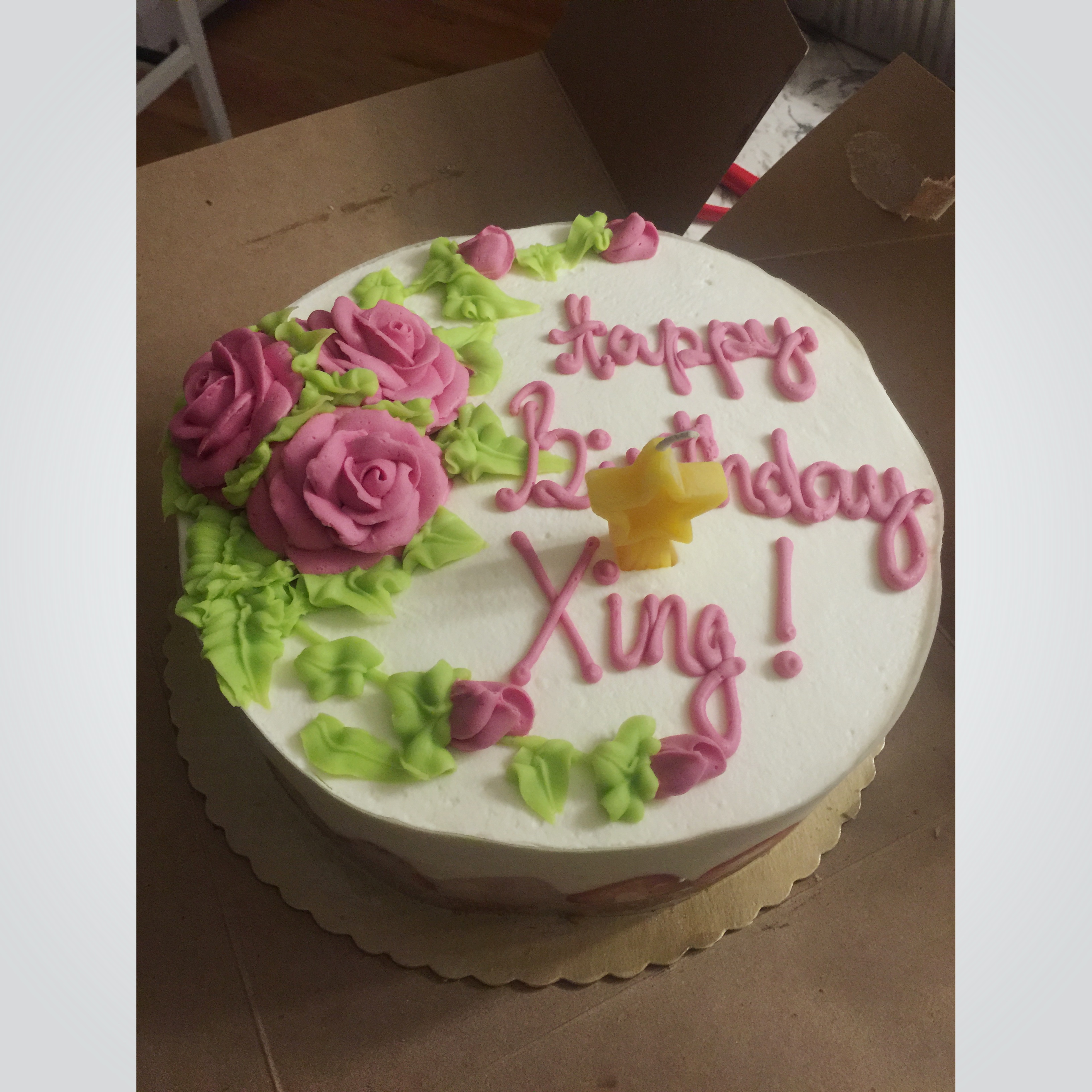 小佳-Claire 做过 晚餐•2015年9月12日 朋友生日给她准备的生日蛋糕,草莓short cake,看见旁边一个蛋糕的裱花漂亮下不定决心,whole food的工作人特别好去帮我问蛋糕师傅也加了花在我买的这个上(原本topping是草莓)。特别好吃,不甜不腻,赞赞赞!家门口有个超市,好方便!越来越喜欢whole food 了,虽然价钱贵点,值! #晚餐•2015年9月12日# 2015-09-13