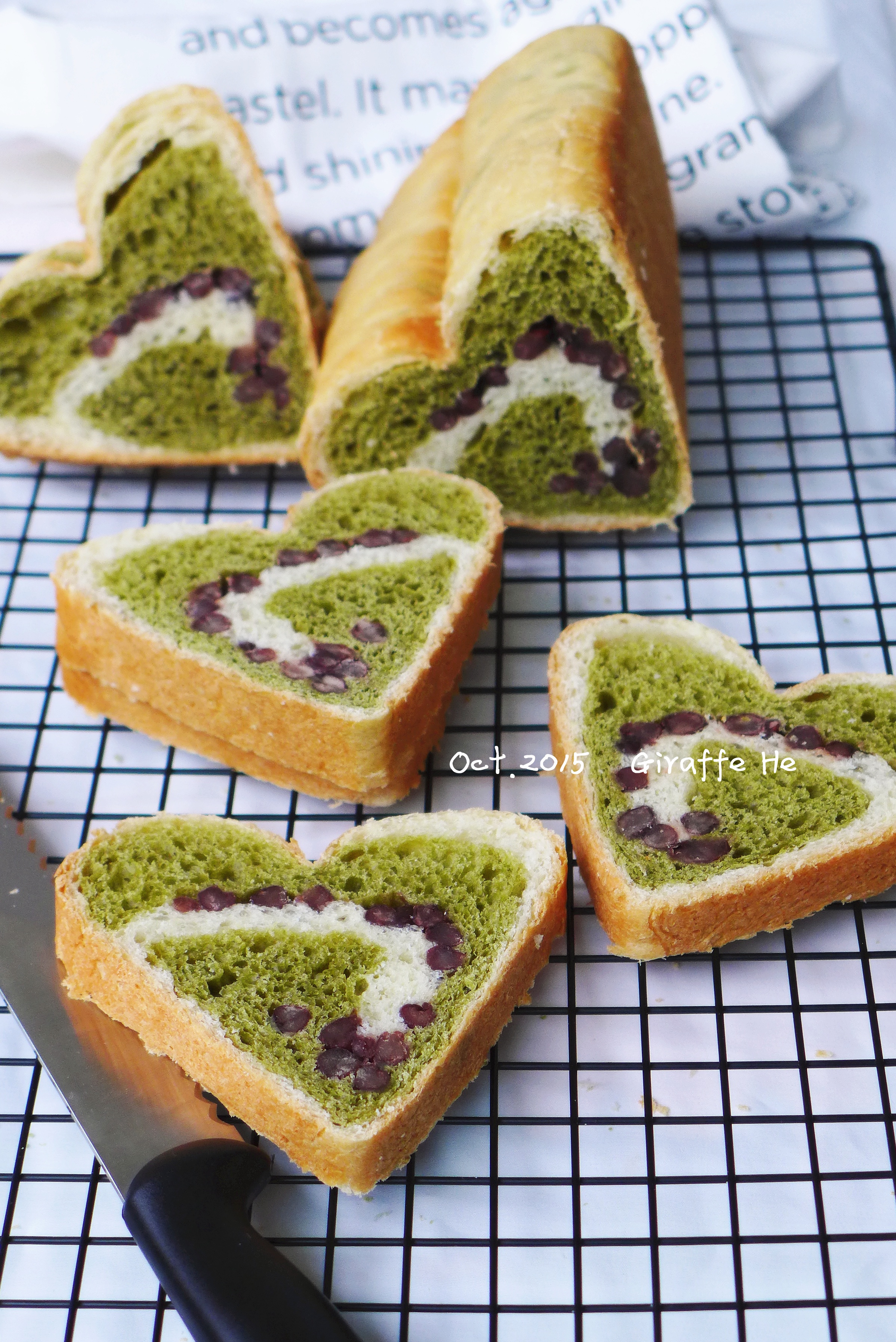 用北海道土司的方子做的抹茶蜜豆土司,方子来自 羽萱的妈妈~