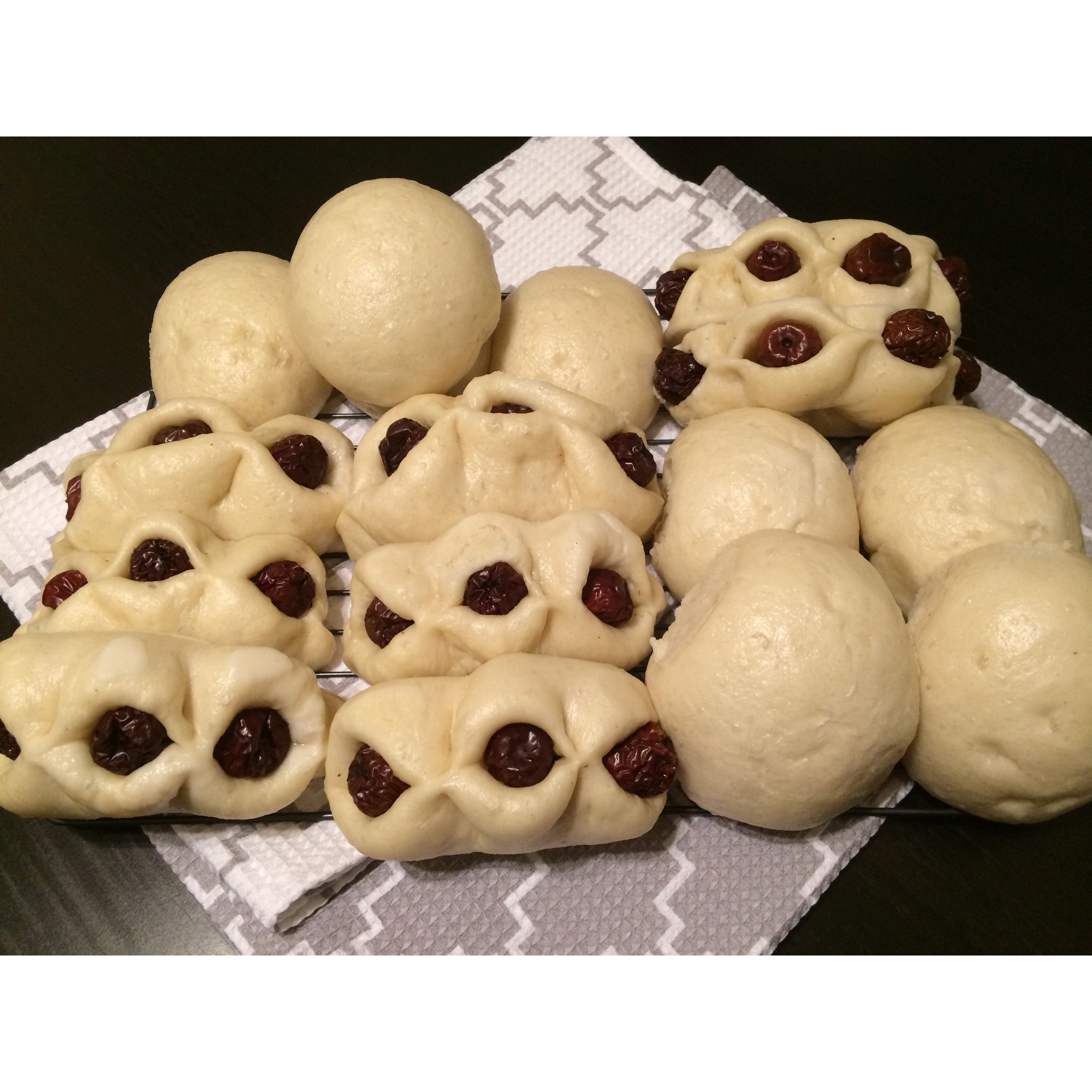 1045674820 做过 晚餐•2016年2月22日 晚饭后把已经醒发好的面做了8个豆沙包8个枣饼😊今天的面发的不错✌小时候姥姥给我们做的枣饼不是这样的,半圆的面饼夹着甜甜的红枣,可惜我能力有限,就凑合给捏上了,保证枣子不会掉出来就好啦😜 #晚餐•2016年2月22日# 2016-02-23
