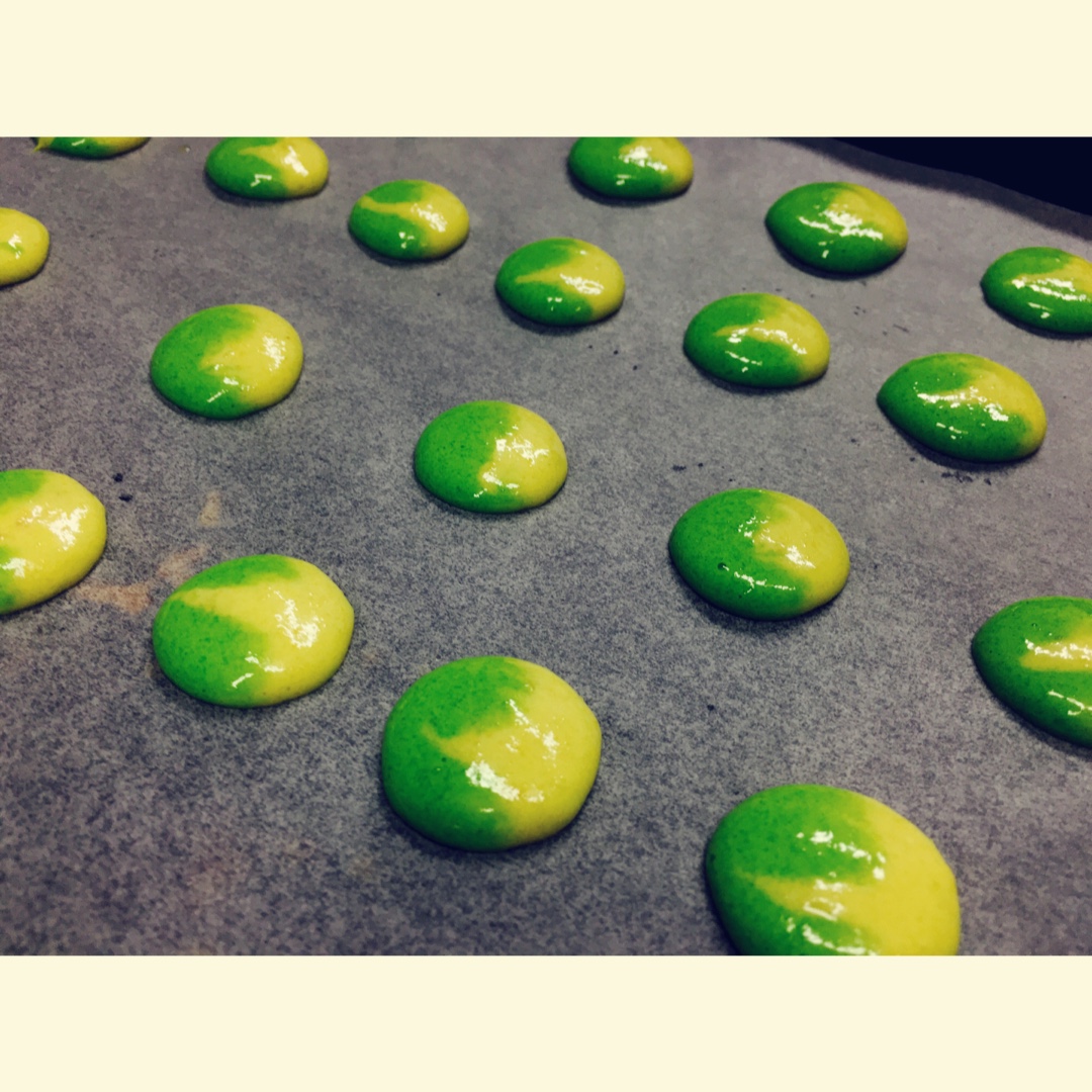 小魚小魚小小魚 做过 晚餐•2016年5月5日 前两天说想喝Mojito,于是今天Mack特调了一杯有酒精的Mojito说是为庆祝我明天生日快乐...第一次在我们厨房喝酒,哈哈,感觉相当不错!为搭配我的酒,做了这绿色配黄色的Macaron,lime和lemon味儿的... #晚餐•2016年5月5日# 2016-05-05