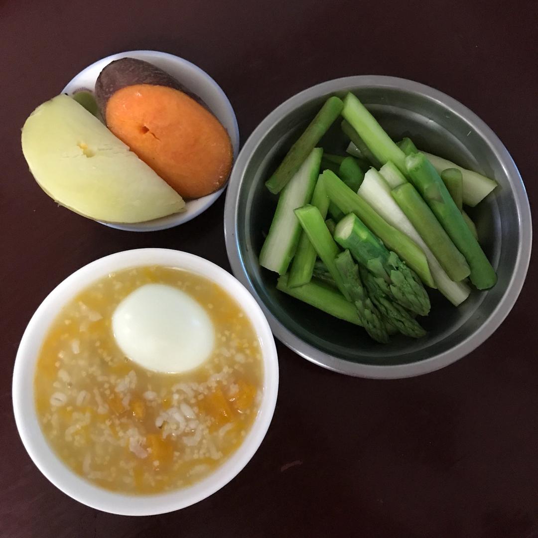 day9:南瓜小米粥+芦笋+蒸二薯