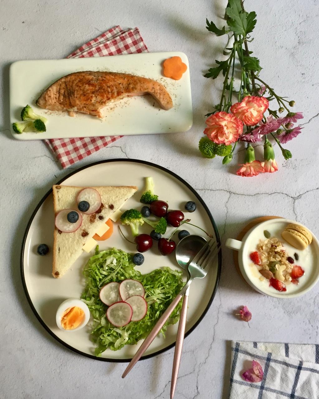 kuangkuangchichi 做过 美食记 #美食记#一个人的午餐#1. 卡通吐司(吐司片+芝士片)2. 蔬果沙拉(樱桃萝卜+蓝莓+樱桃+生菜+西兰花+水煮鸭蛋)3. 自制无糖酸奶+格兰诺拉燕麦+蜂蜜+草莓4. 香煎三文鱼吃好每顿饭,就是对家人最大的责任[愉快]致敬每一个不将就的人儿! #午餐•2018年1月25日# 2018-01-25