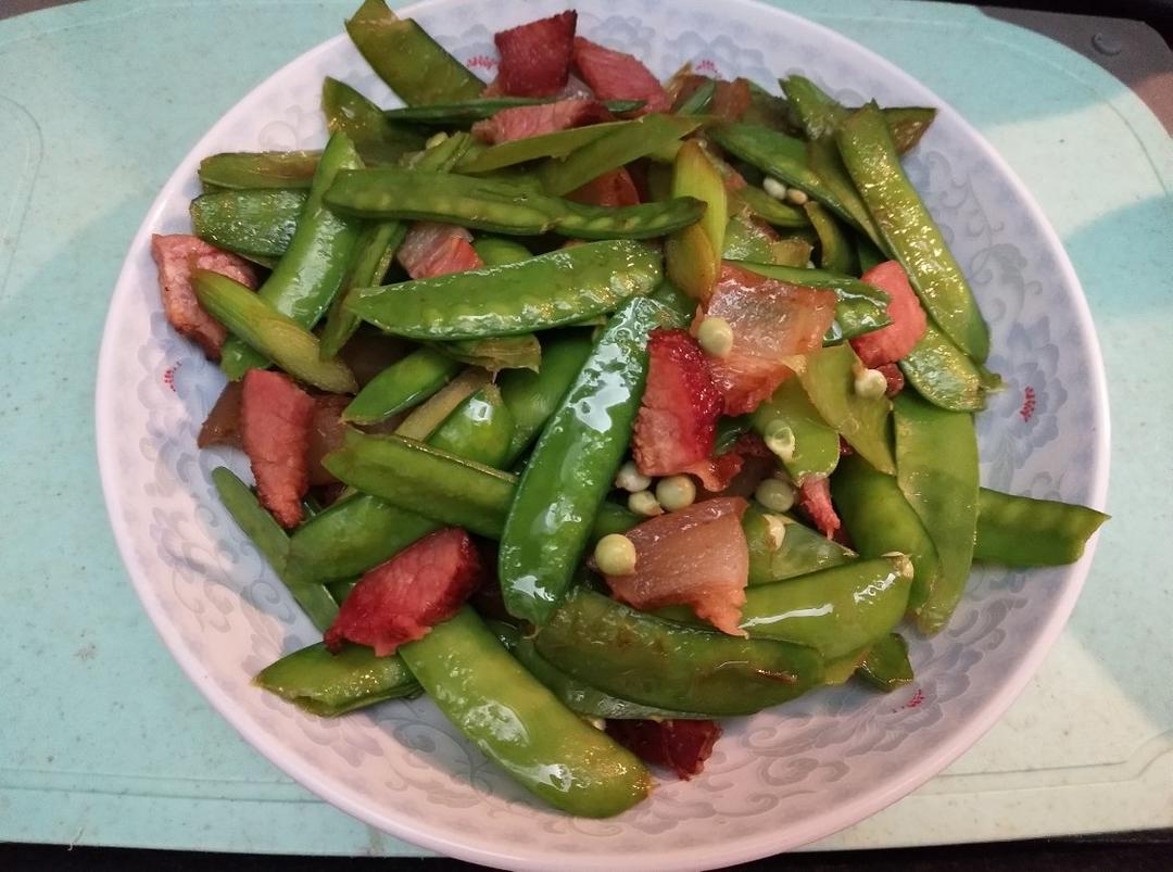 腊肉炒荷兰豆 + 烤叉烧,早午餐一起了😊