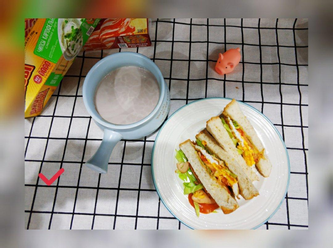 加了可可粉的纯牛奶 满满当当的三明治 温暖