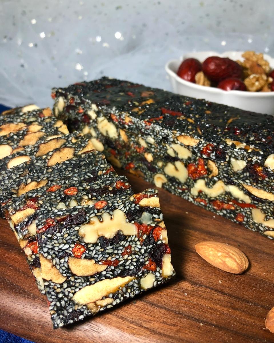 梨梨爱烘焙 做过 芝麻核桃软糕 像阿胶不😁全名叫乌发养颜糕!本来有少白发的我年纪渐大白头发也多了起来,希望每天吃几片以后我的黑头发能多一些,然后变得美美哒🤪这款是用的晓廷的方子做的,还不错。#早餐•2019年3月17日##梨梨制作##梨梨的糖 糕# 2019-03-17