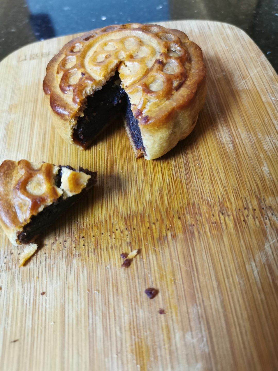 用这个馅料做的mooncake😃好吃,可香了,刚做好就切了个,来安慰我受伤的心灵(炒馅料竟然炒那么久🙃,我增糖增油啦