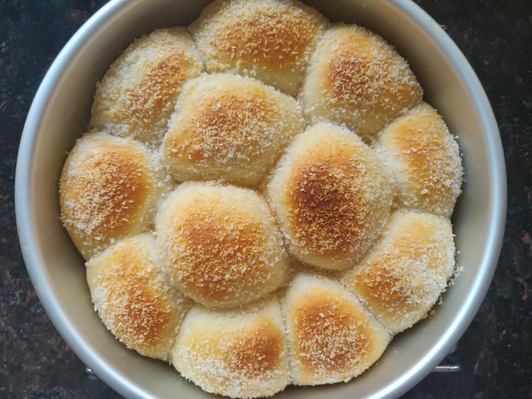 方子很好,姐妹们放心做吧,家里有啥模具就用啥,不愁面多面少,二发之后刷了蜂蜜撒了椰蓉,亲测了,包子无敌软!!!