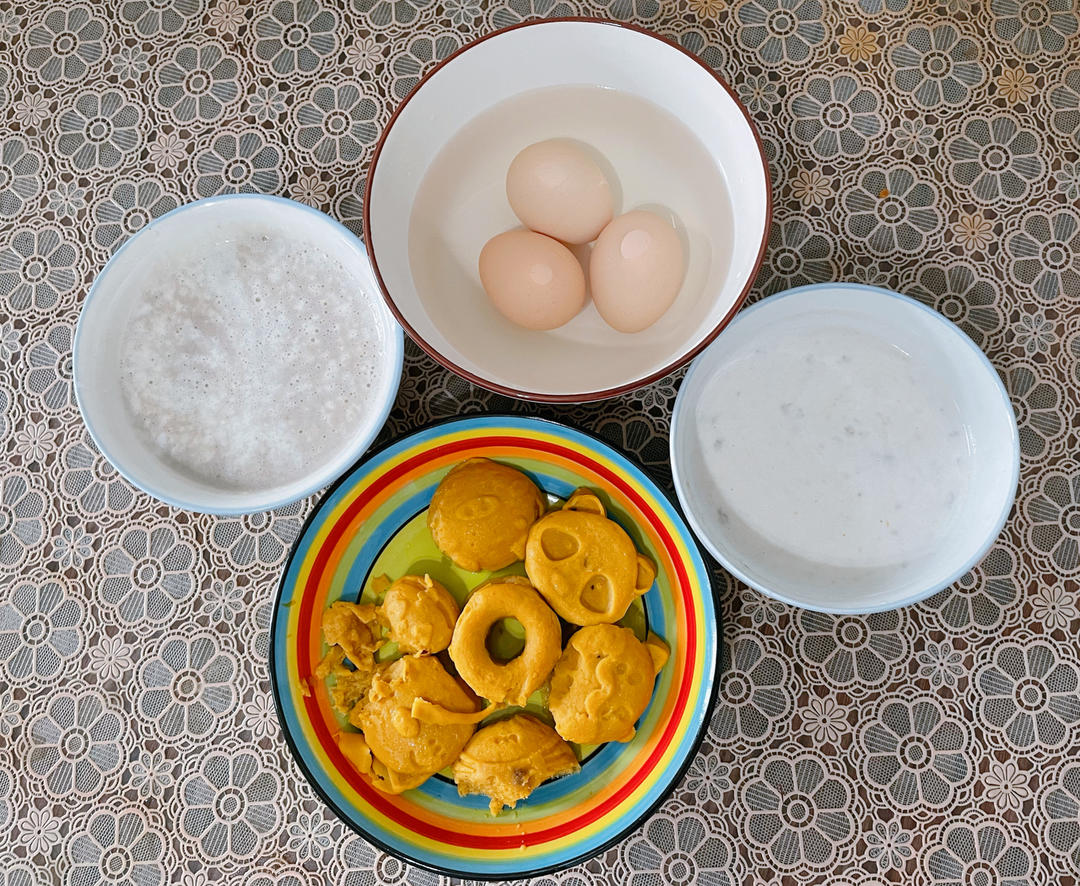 一家三口的早餐,宝宝可以吃南瓜红枣蒸糕,宝宝只能吃一点点,都被她爸妈吃了😄