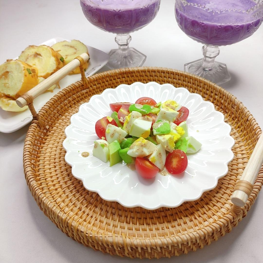 binbinc 做过 早餐•2021年10月5日 早安美好的一天从一份简单营养的早餐开始今日份肉松蛋糕卷➕紫薯燕麦银耳羹➕牛油果轻食沙拉超浓郁的牛油果🥑,口感太棒了#早餐•2021年10月5日# 2021-10-05