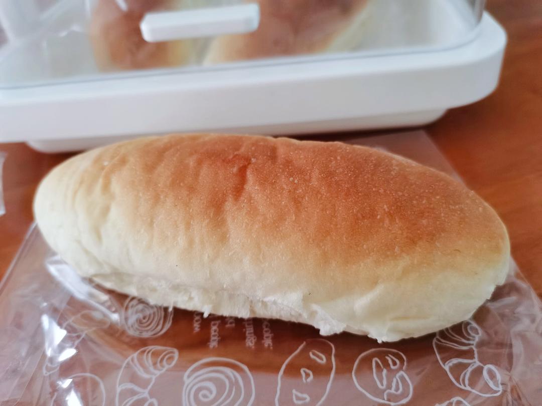 4、也许是入炉前没有刷蛋液,出炉后表皮稍有点硬,放了一天才慢慢回软了。整体还是不错的,值得推荐。
