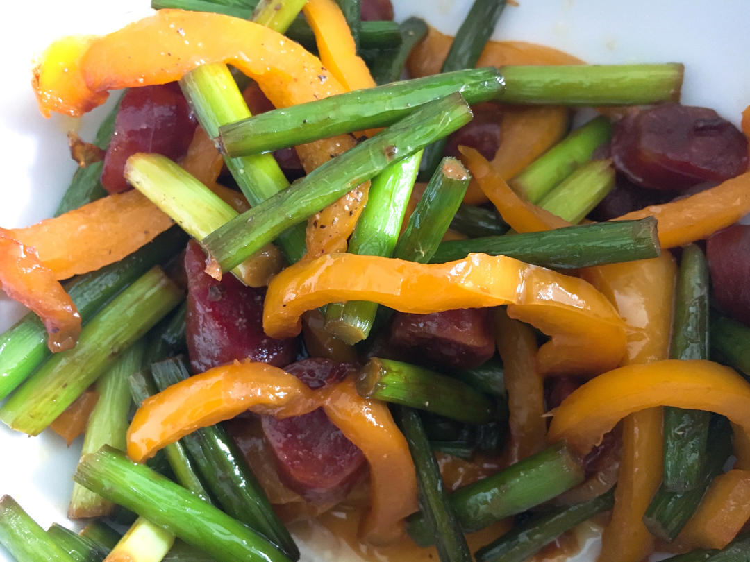 蒜薹腊肠炒彩椒