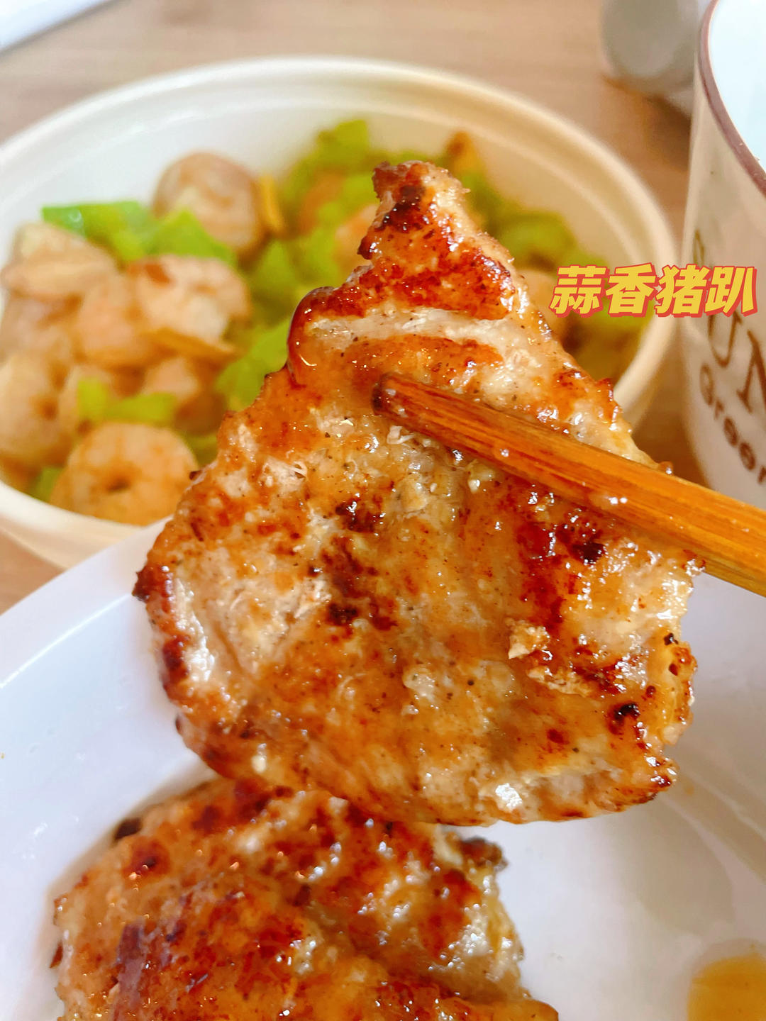 橘子汽水1542 做过 2022年05月03日 蒜香猪扒猪扒用刀背敲扁 泡百分之三的盐水 泡出血水后用厨房纸巾擦干提前一天用洋葱 蒜沫 生姜 油 生抽 老抽 料酒 胡椒 盐 糖 蚝油腌制一晚上猪排第二天用玉米淀粉抓拌煎即可 2022-05-03