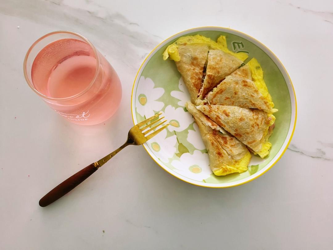 快手早餐~手抓饼吃法1(手抓饼包蛋)