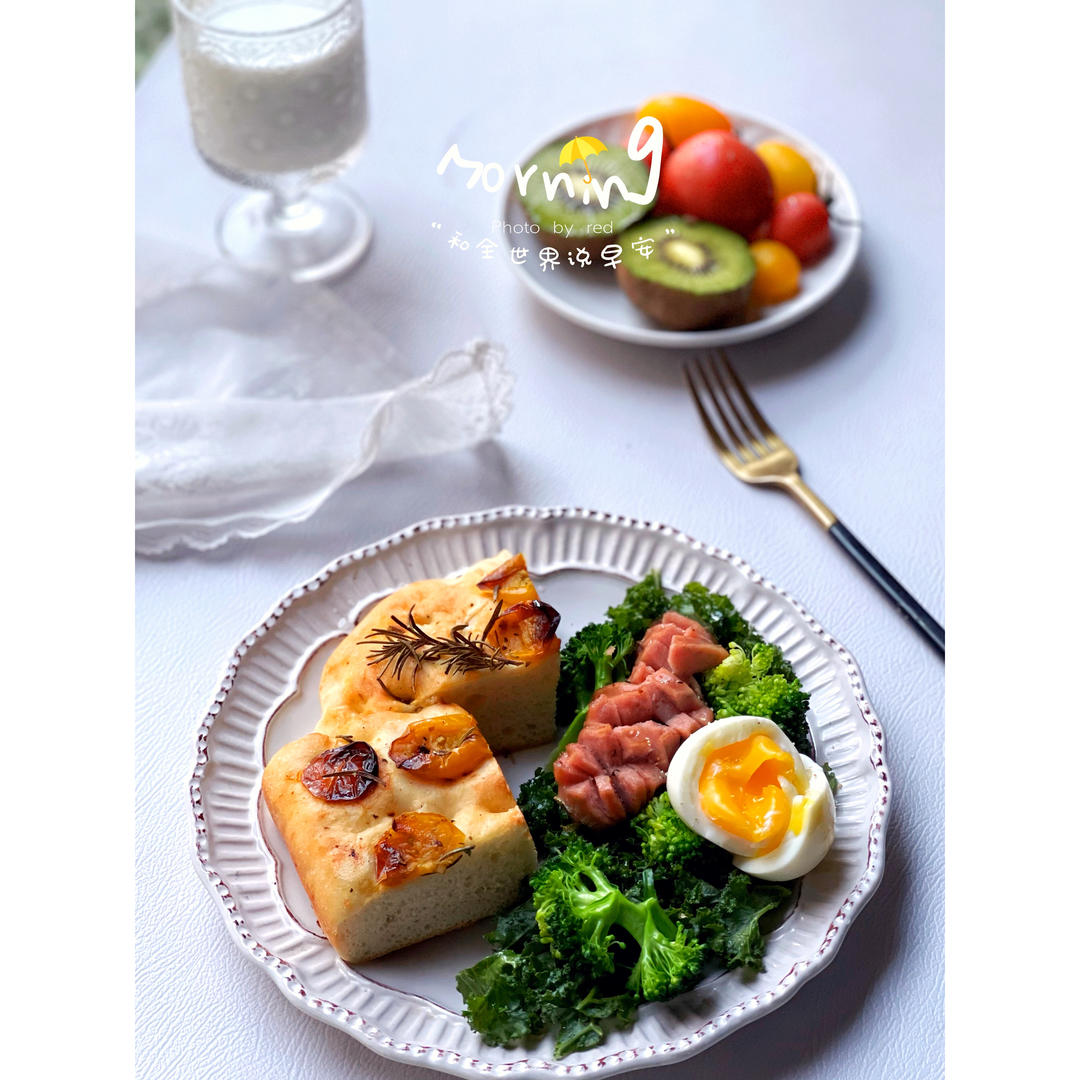 佛卡夏➕水煮西兰花、蛋➕牛奶