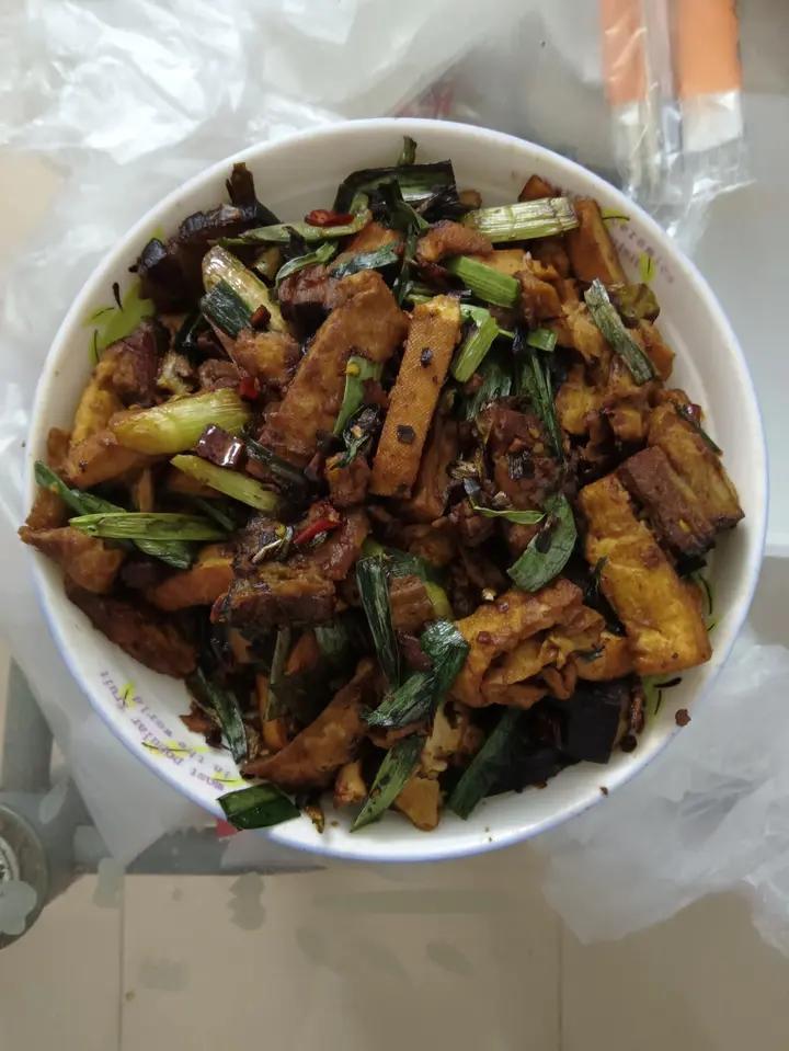 虽卖相不太好,味道还好吧。就是腊肉炒得有点干。腊肉是网购的四川腊肉,五香干是今天中午在菜市场买的