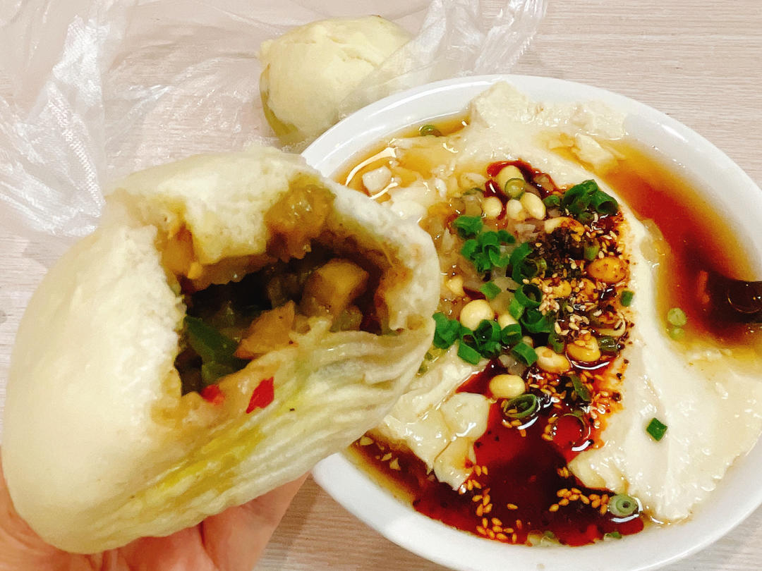 今早外出顺道在城墙根下吃了个早餐,茄子包子可真辣呀😅