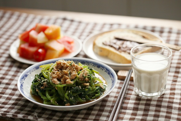 今天早上吃了这么多!!全部吃掉了!!!这一大盘茼蒿太美味了~~~