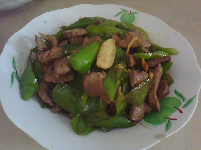 这算是偶的得意之作了.心得就是先把猪肝用料酒、盐、生姜腌一下,辣椒先炒至断生,然后再用油煎猪肝,再把炒好的辣椒一起放入炒熟。