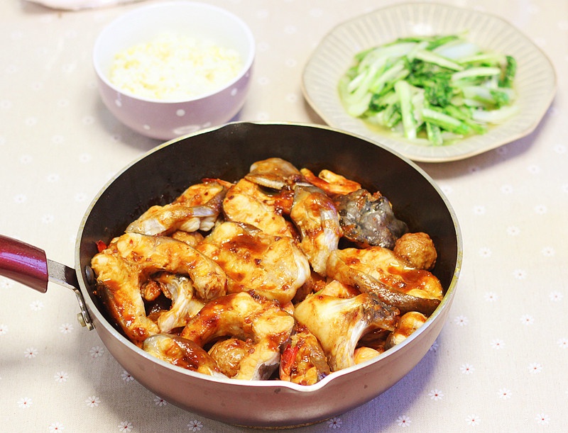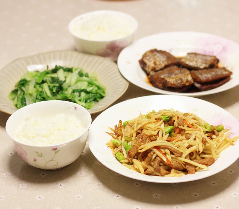 茭白肉丝、红烧带鱼、清炒小白菜