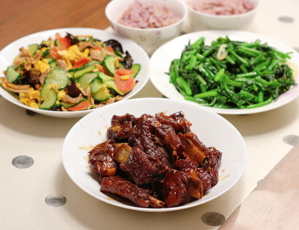 这个版本的糖醋排骨是目前做过最方便且最好吃的,但10分钟真的不烂……大概炖了40分钟吧。 糖醋排骨、木须肉、蒜蓉菜心。 ...