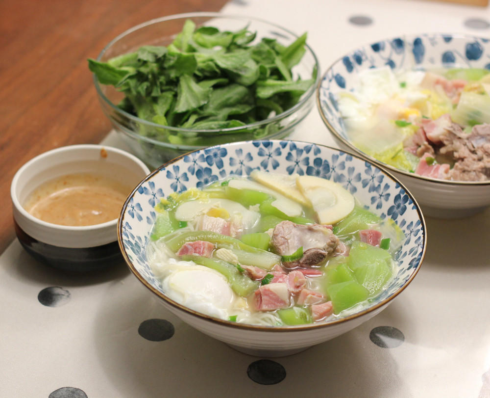 腌笃鲜剩汤煮面+麻酱冰草