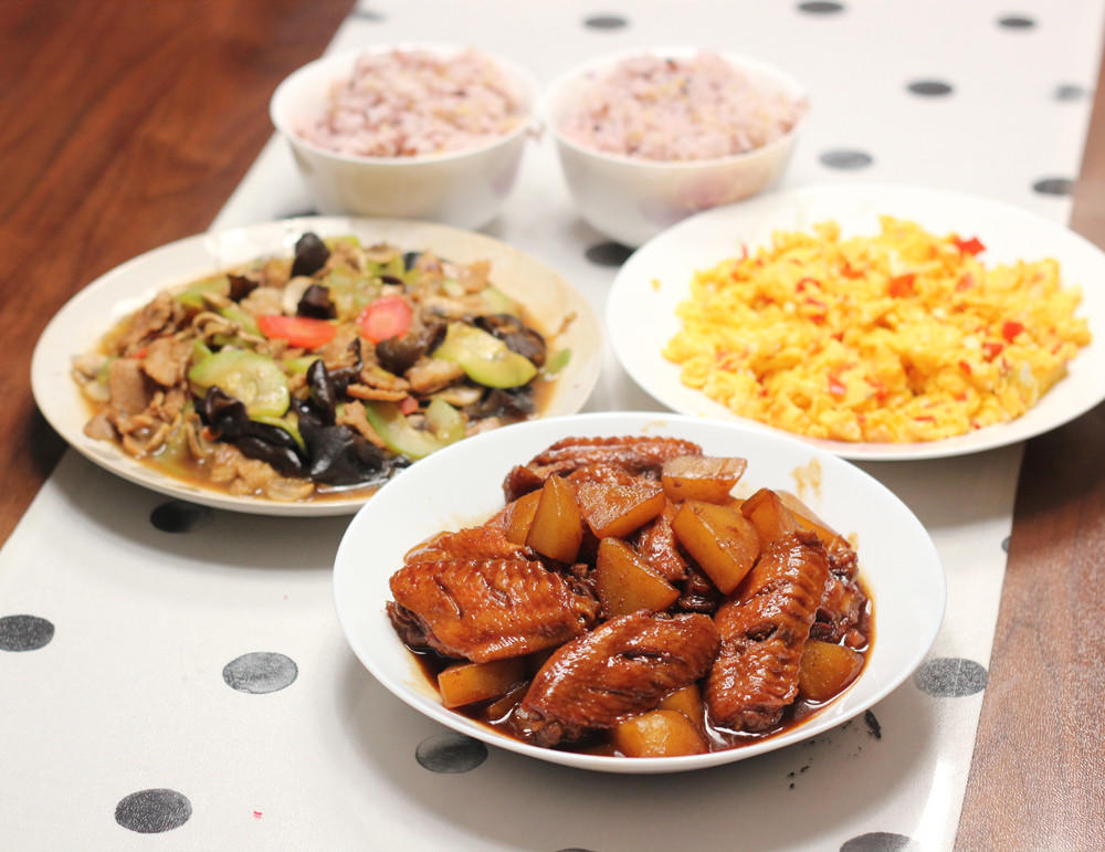 每天自己做饭吃!荤素搭配有营养!