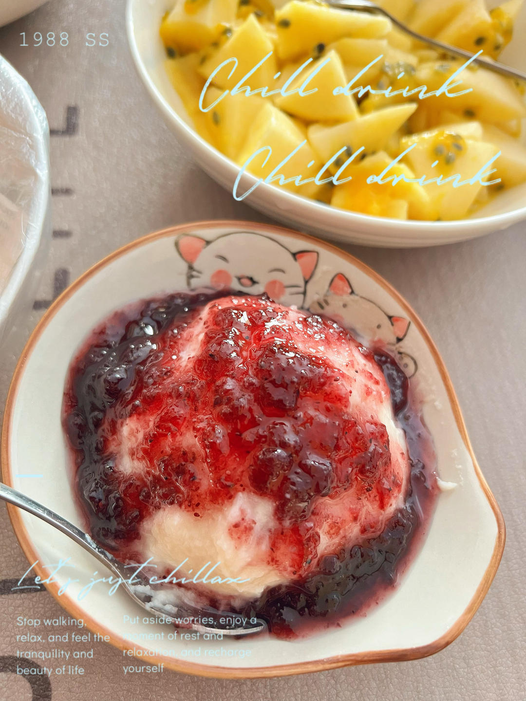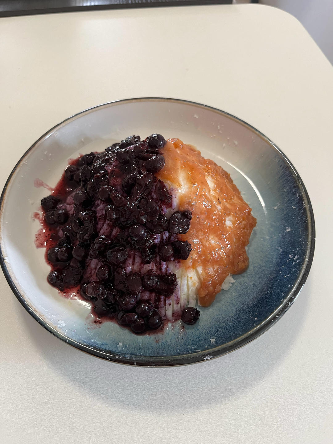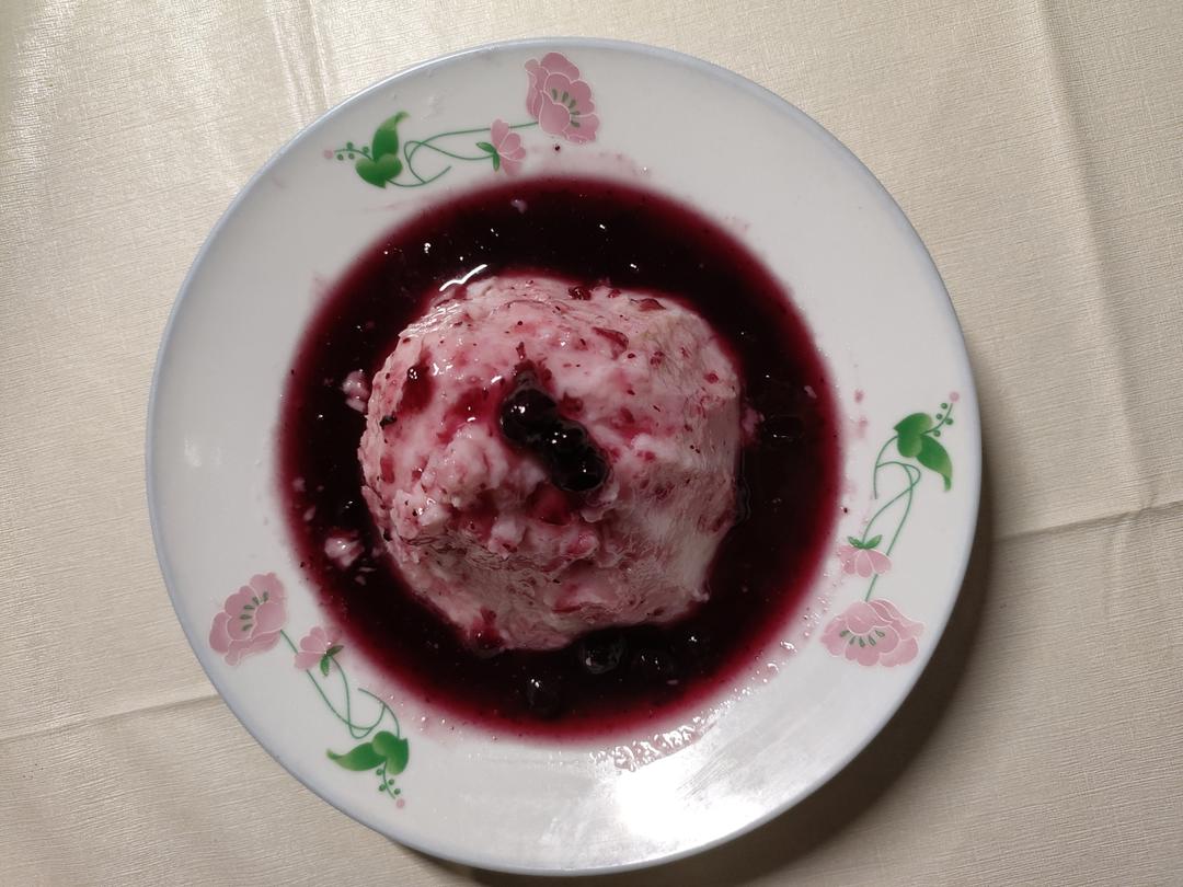上面浇上自制蓝莓酱和山楂酱双拼