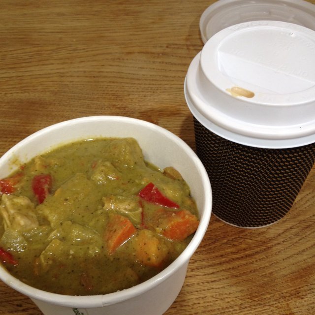 早餐太油腻 午餐简单一点 绿咖喱鸡肉和flatwhite 【卖相的确是差了点…三明治店出品...