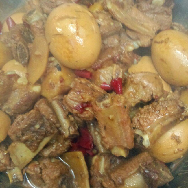 红烧排骨!煮的时候加了几个熟鸡蛋!鸡蛋味道不错!