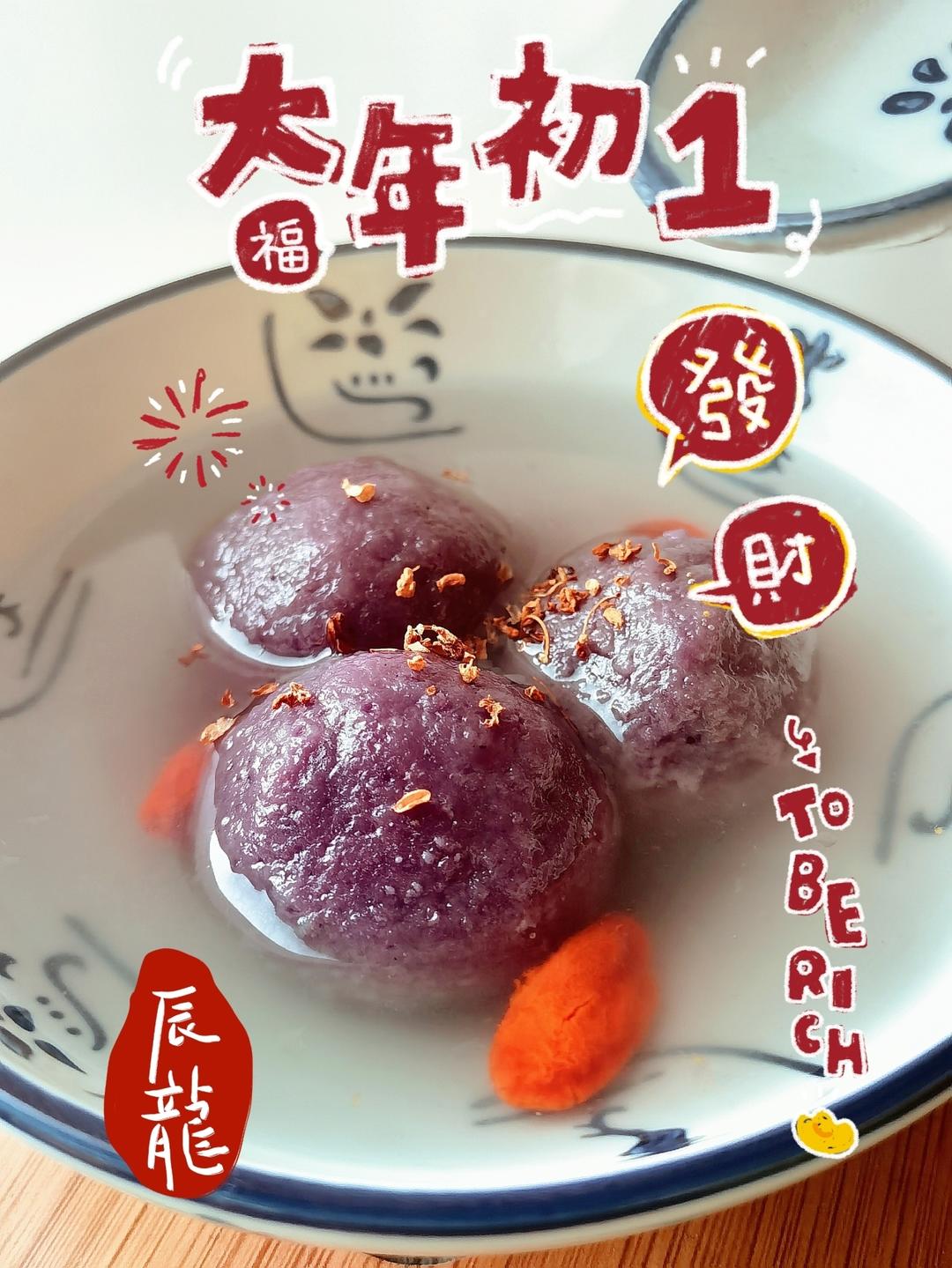自制紫薯粉包的汤圆,表皮不光滑。娃说要全甜✌