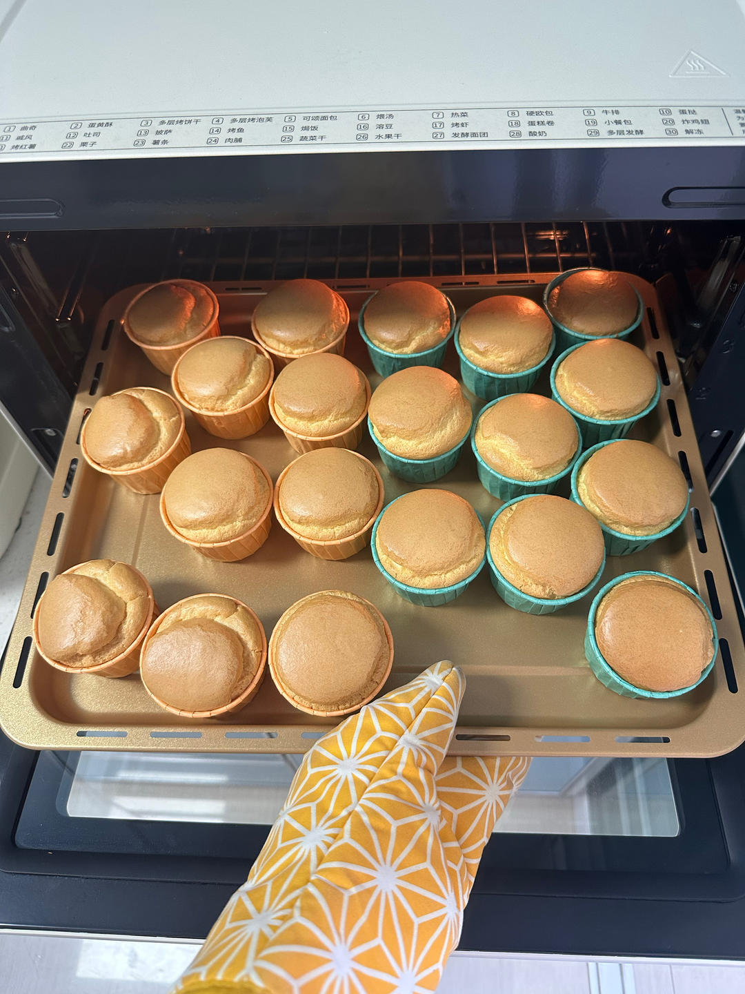 戚风⑤蛋配方,出20个纸杯。时间是45分钟。温度应该是下150和上145。