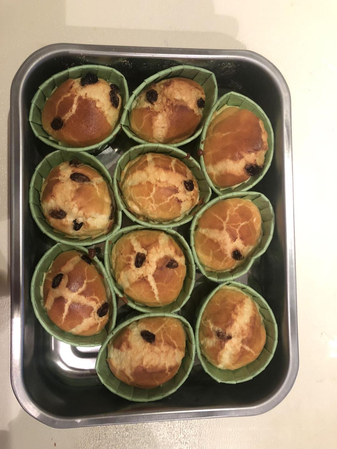 松软可口,用的普通面粉,打发蛋清没有白糖了用了一点玉米淀粉,最后在三岁宝宝的建议下加了些葡萄干😁点缀,味道不错哦~做出来...