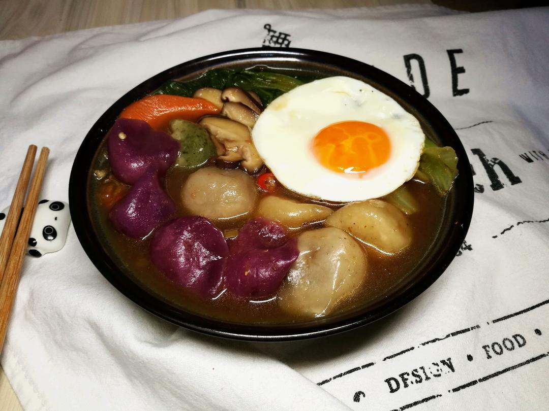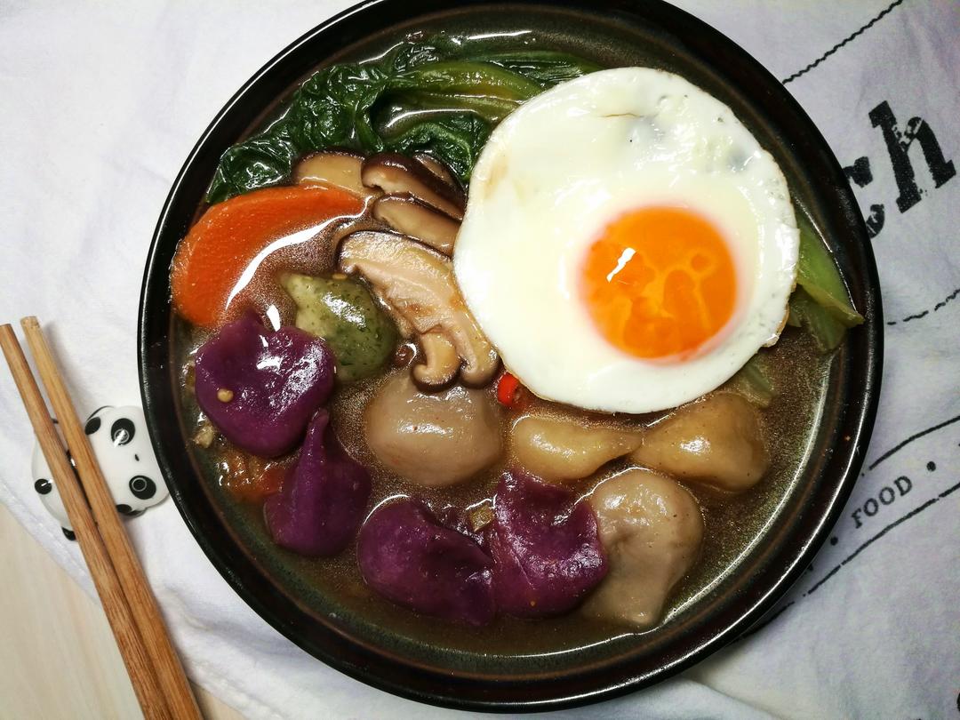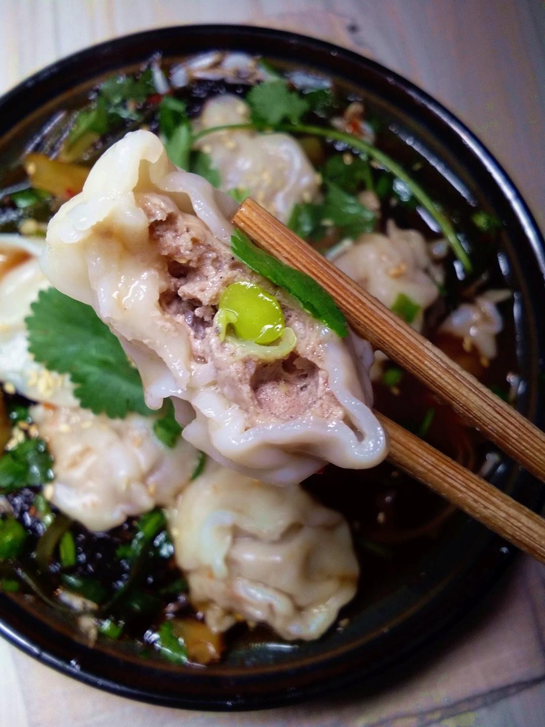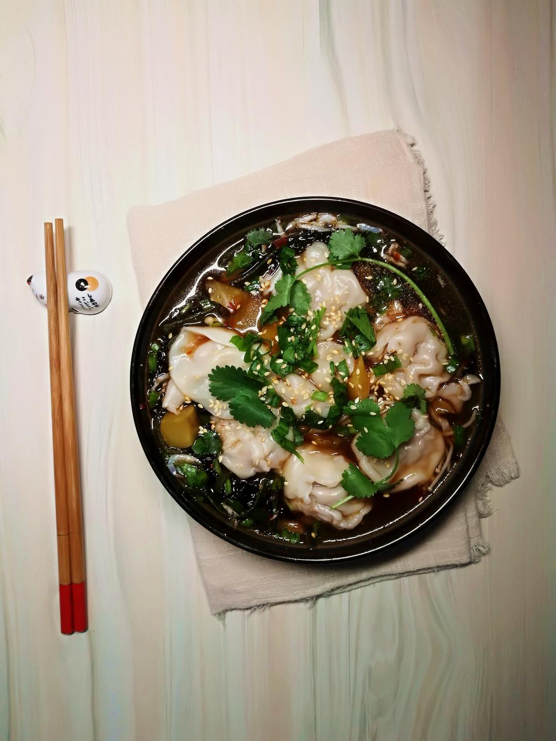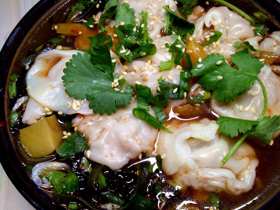 一碗长得像馄饨的酸汤水饺。。。。煮了前几天包的番茄...