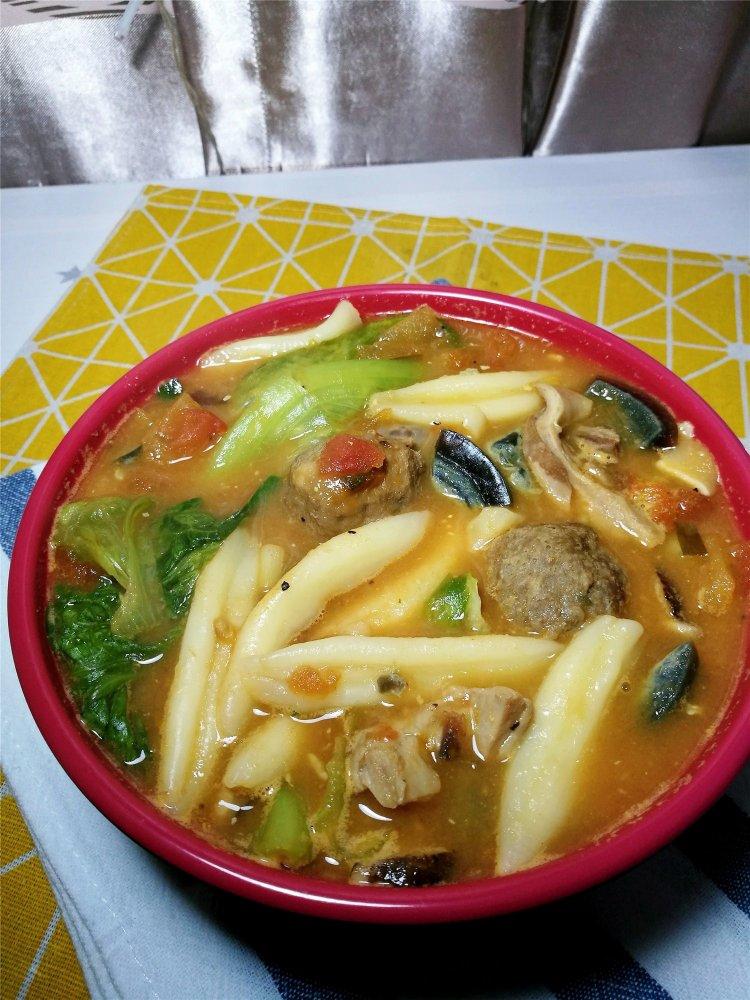 第一次吃疙瘩汤,面疙瘩是老爸直接从网上买的,很方...