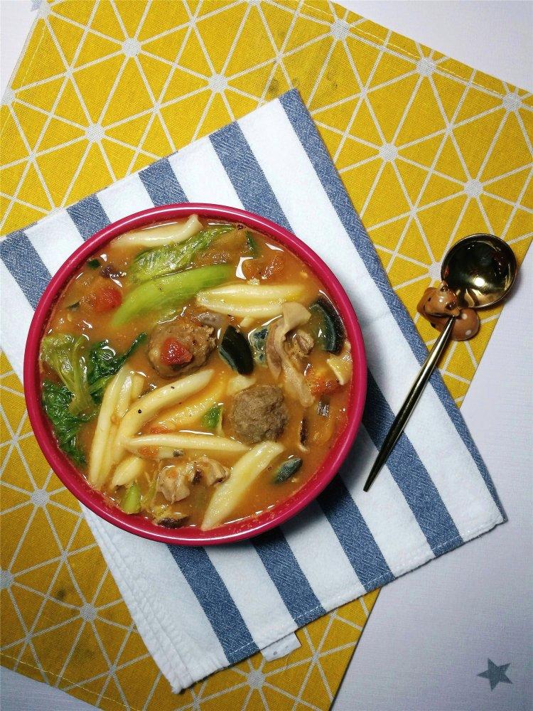 晚上的番茄疙瘩汤~只要是番茄的汤底都绝对不会难喝...