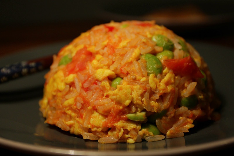 西红柿炒蛋+米饭+毛豆