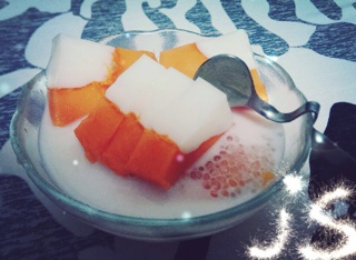 我要当厨娘^_^等了三个小时,终于做好了。木瓜椰奶冻+椰汁西米露Y(^_^)Y