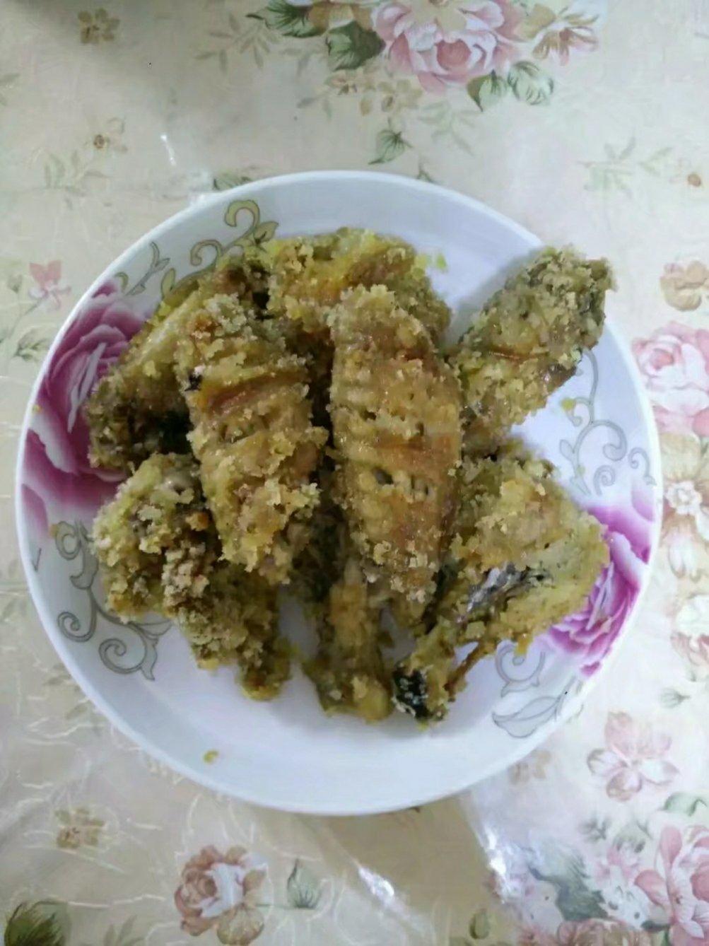 腌制之后,裹上面包糠,烤出来的鸡翅。不是炸的,没那么上火