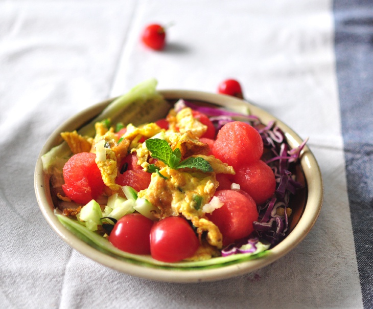 这个纯属心血来潮做的,煎鸡蛋碎加西瓜,哈哈,算一道简单独特的...
