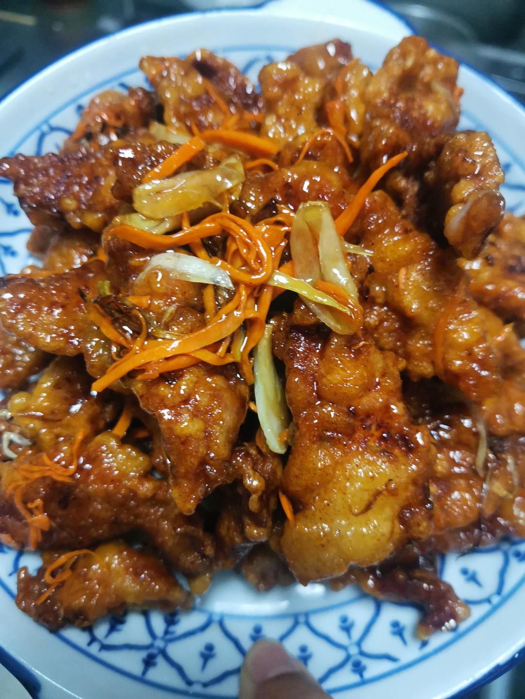 跟我妈合力第一次做锅包肉😍😍方子应该很好!就是裹糊的时候加了油也还是太干了 可能是因为第一次用土豆淀粉~最后涂涂抹抹糊挂...