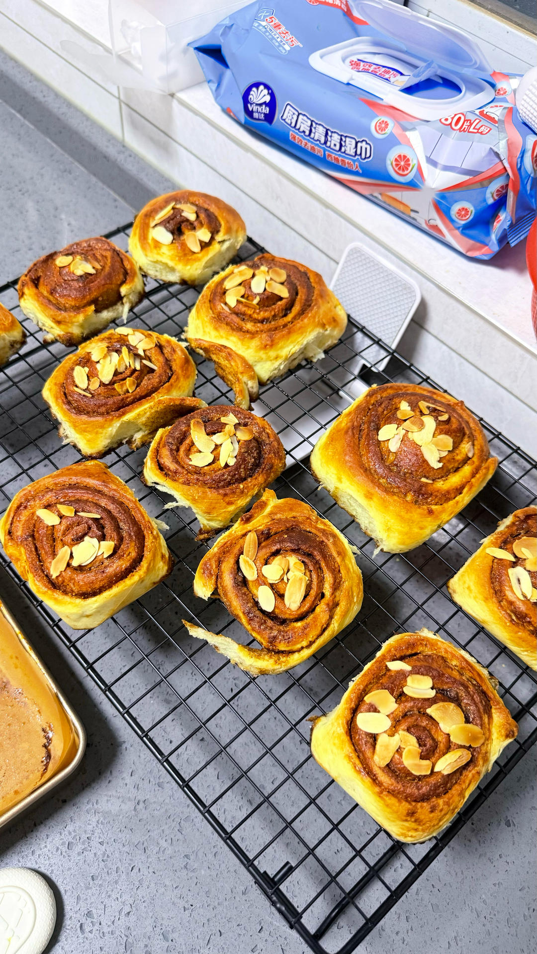 手机拍的比较亮 上次吐司失败了 第二次尝试肉桂卷 大成功 成就感满满