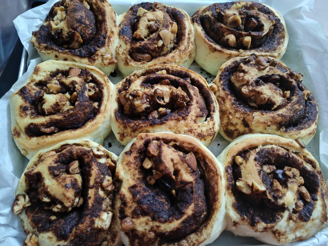 (馅料:90红糖粉,30肉桂粉,刷黄油,撒50g)