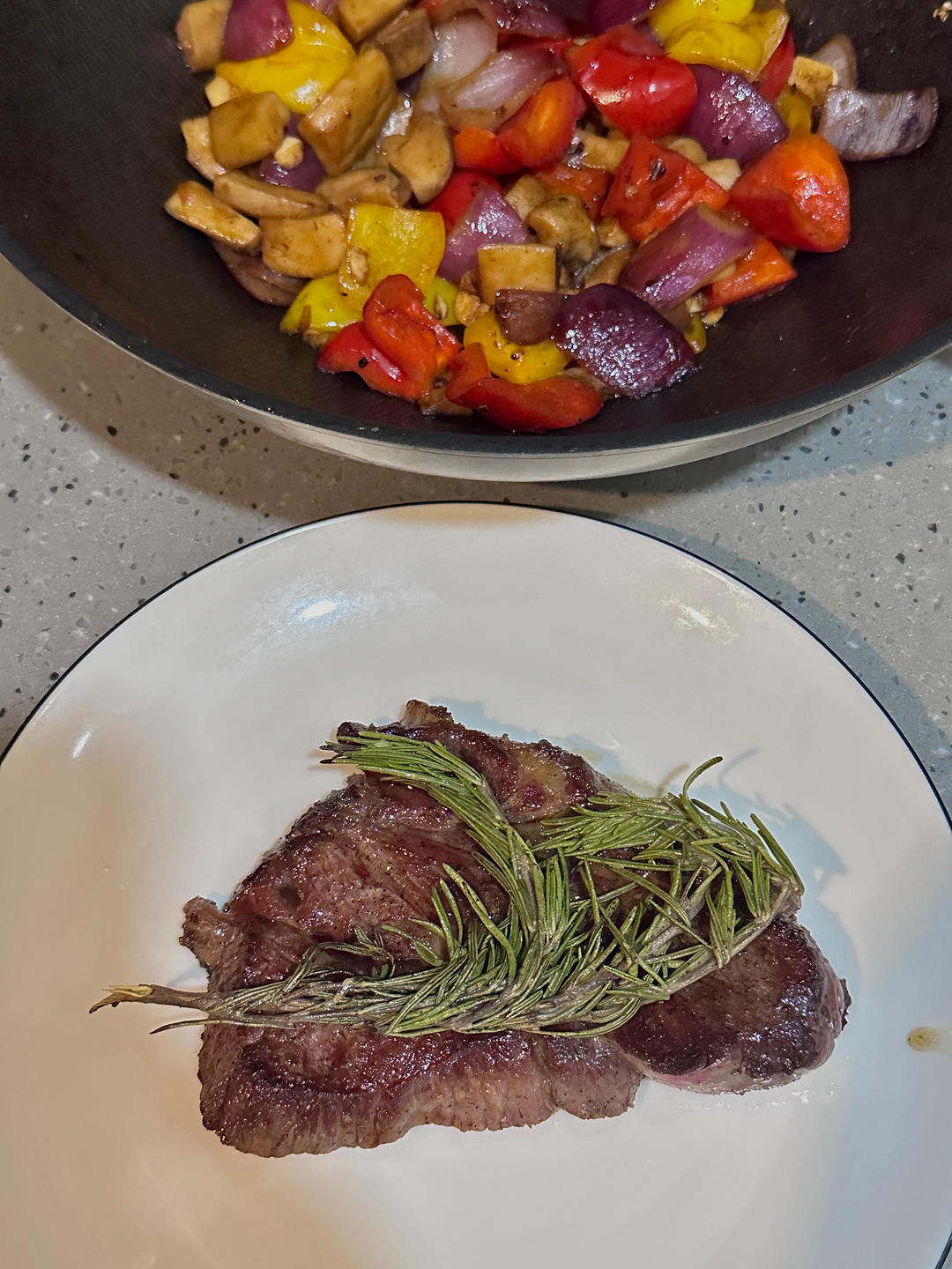 迷迭香放的有点多 忘记煎大蒜了