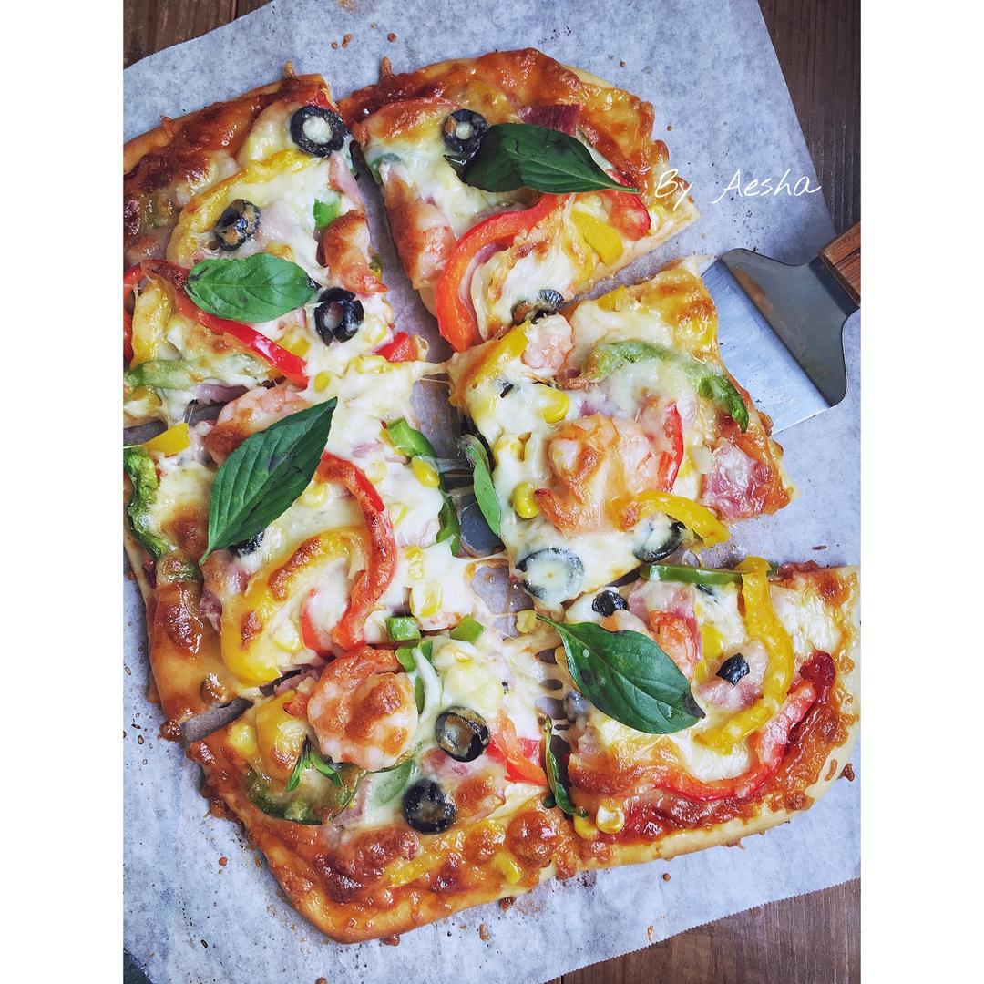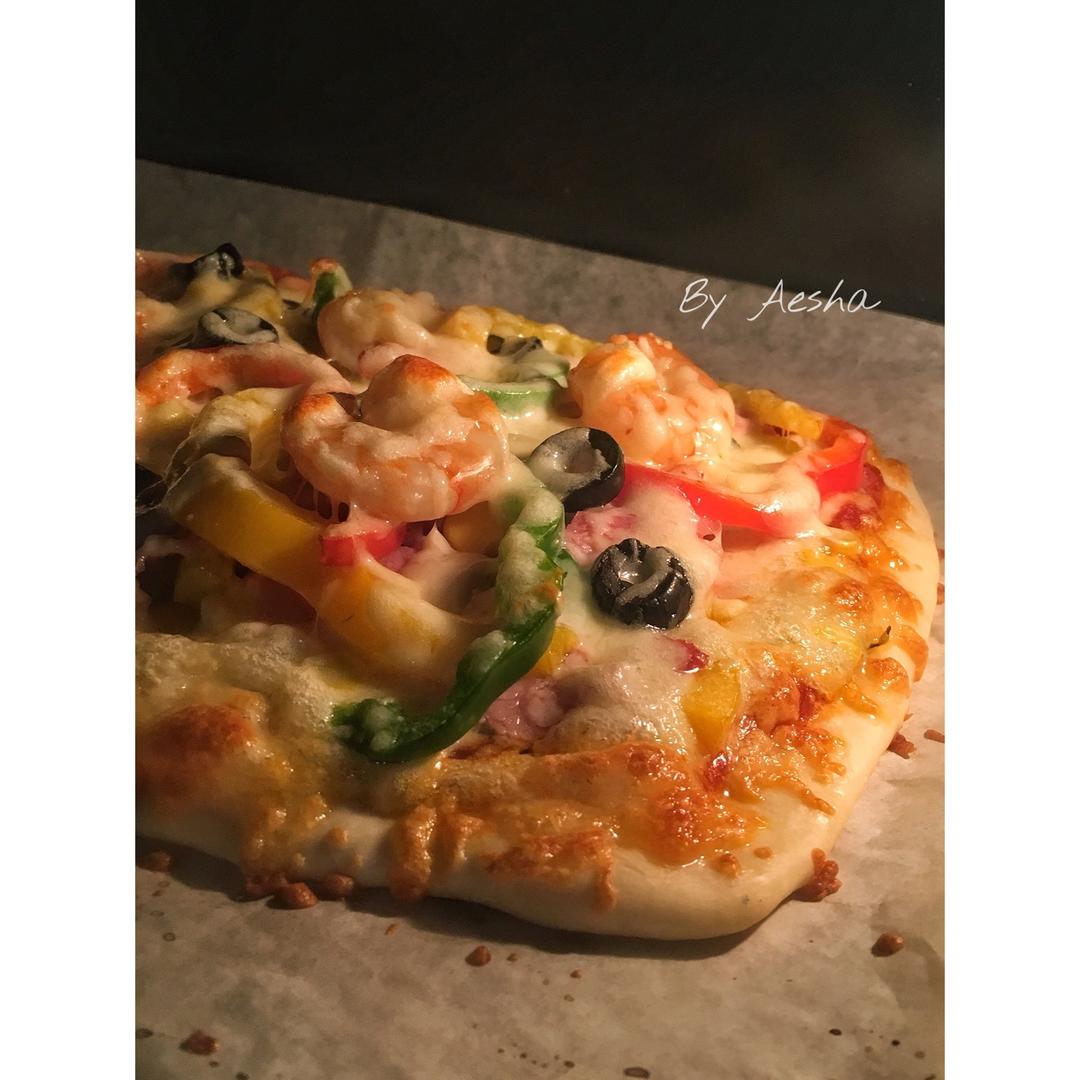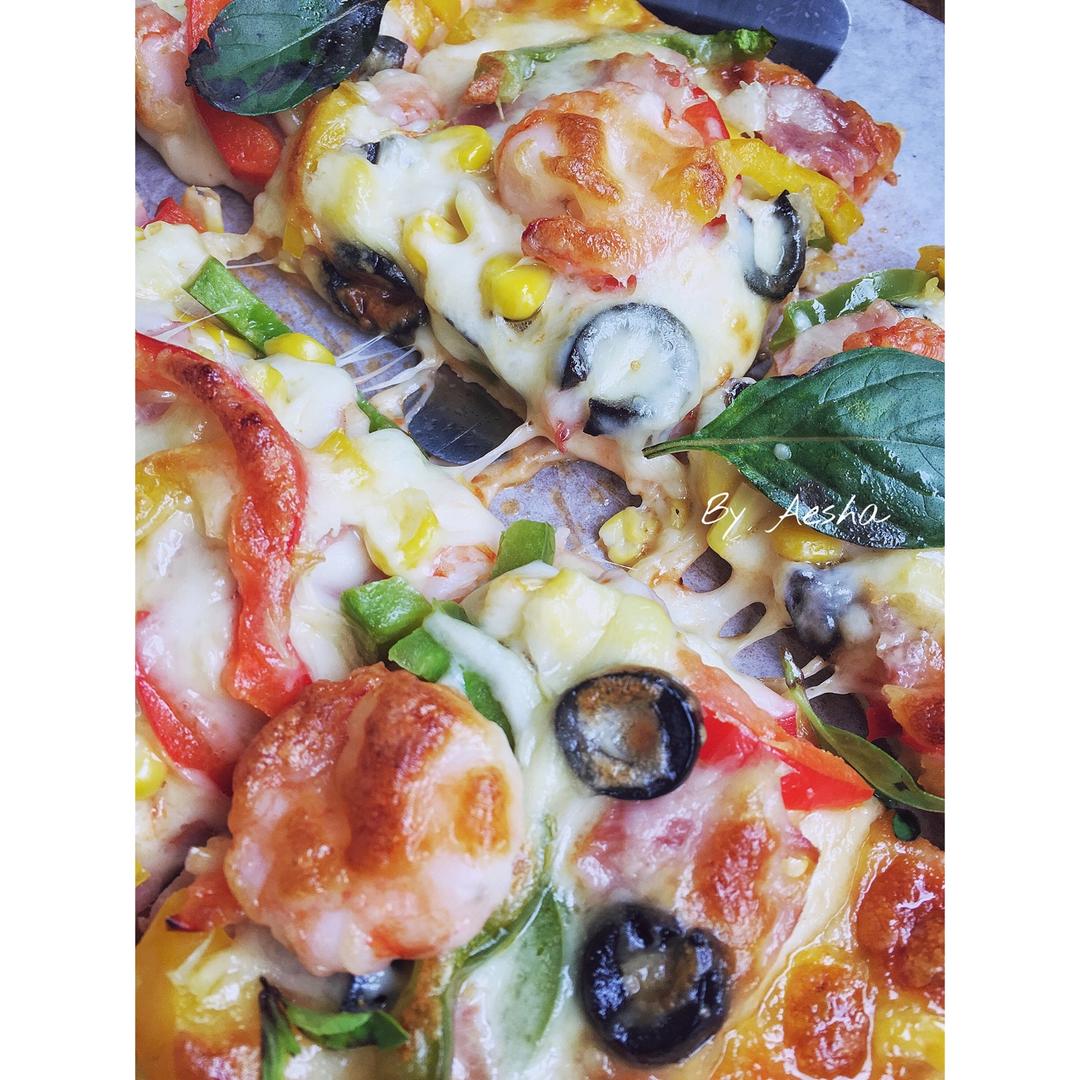 好久没烤披萨啦!狂撒料是我的标志哈哈哈!