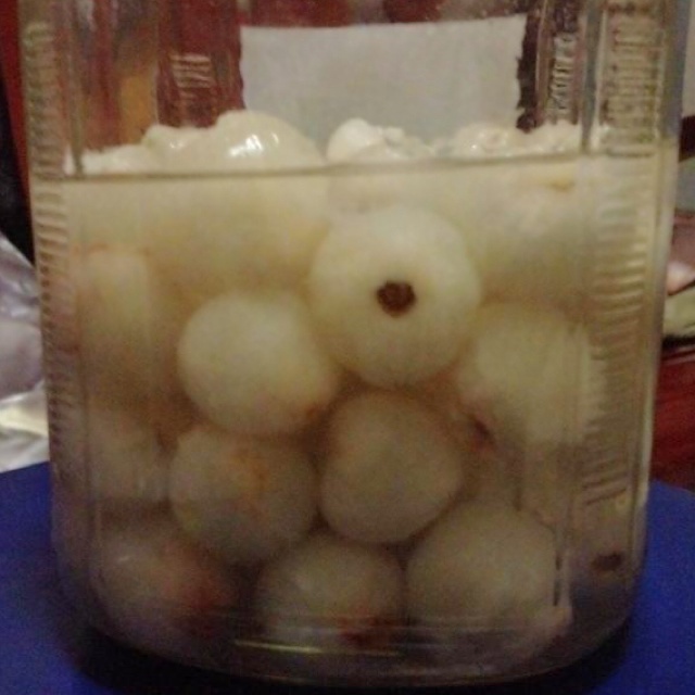 3斤多荔枝~两瓶真露~楼主说冰糖不要太多,所以就只放了一大块~期待效果啊~~~