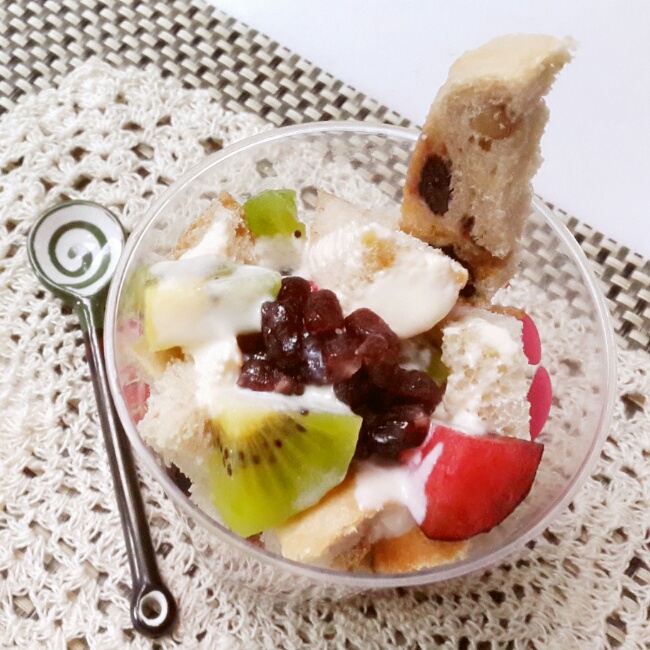 全麦葡萄干面包酸奶综合水果沙拉。我就矫情矫情这长长的名字了。其实就是普通的酸奶沙拉...